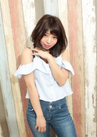 肩くらいの長さのロブ。 毛先にワンカールのパーマをかけ女性らしい柔らかなシルエットに仕上げました。 カラーはブラウンベースで。