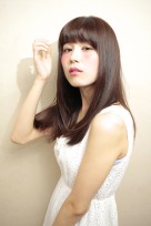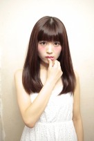 重めシルエットのワンレングスのストレートスタイル。艶を出し、上品で清楚な印象に仕上げました。カラーリングはアッシュブラウン系の色で。