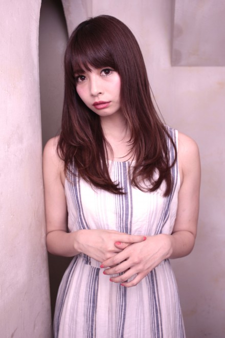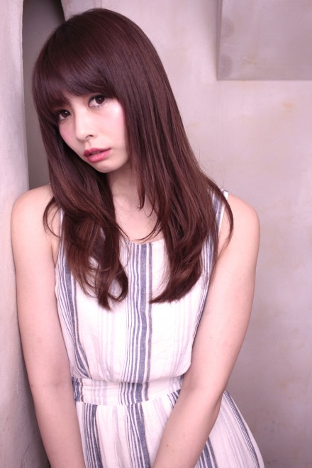フェミニンな女性らしい雰囲気のあるストレートスタイル。カラーリングは大人っぽいバイオレット系の色味で。