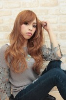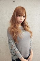 明るめの髪色のロングを大きくカールするパーマをかけてフェミニンな印象にしたスタイル。