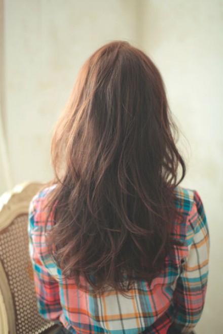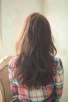 ふんわり柔らかカラーで思わず触れたくなる髪に☆ 色素薄めで色白に見え、お肌が綺麗に見えるマルサラベージュ系カラーです! やや暗めのトーンに設定する事で顔全体が引き締まり、黒目も引き立つので小顔感を出すアクセントになりますよ!! ロングスタイルは大きめの38ミリのコテでしっかり巻きましょう! デジタルパーマなどで巻きやすい状態にしてからスタイリングをすると朝がとても楽チンですよ☆