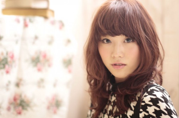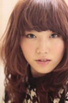ツヤ感を残しつつ、柔らかなカールで女っぽい華やかヘアに。 リップラインにボリュームをもたせて小顔効果を狙います。 厚め前髪で目力UP!間違いなくモテる!!