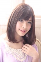 艶感のある軽く内巻きなミディアムのストレートスタイル。伸ばしかけの長さでもはねにくいスタイルです。カラーリングはほんのり赤みのあるブラウンで艶をより強調しました。