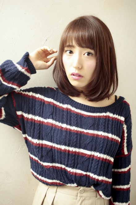 重めのミディアムスタイルに空気感をいれて跳ねないけど軽めに仕上げたスタイルです。カラーはブラウンベージュ系の色にしました。