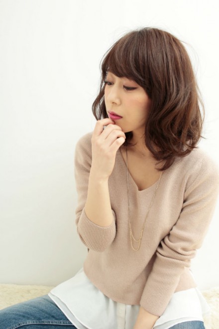 カール感をしっかり出した長めのボブ。 しっかりカールが大人の色気を醸し出すスタイルです! カラーリングはブラウンベースの色で!