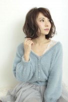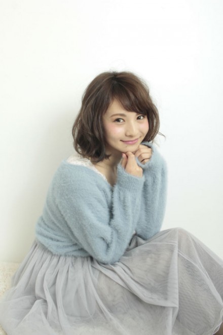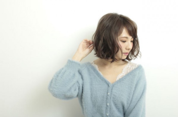 重めのシルエットにカットしたボブです。デジタルパーマをかけふんわり仕上げました!