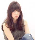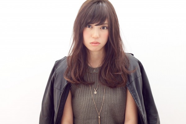 脱力感あるゆるいウェーブでナチュラルなリラックス感を。目尻に向かって落ちる流し前髪で女性らしさも忘れずに。暗髪に毛先はハイライトを仕込んで細部にもこだわります。