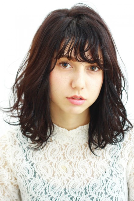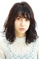 暗髪でちょいモードレディな雰囲気に。ウェットな質感でしっかり束感をだして重軽な印象。デジタルパーマで簡単に再現できます。
