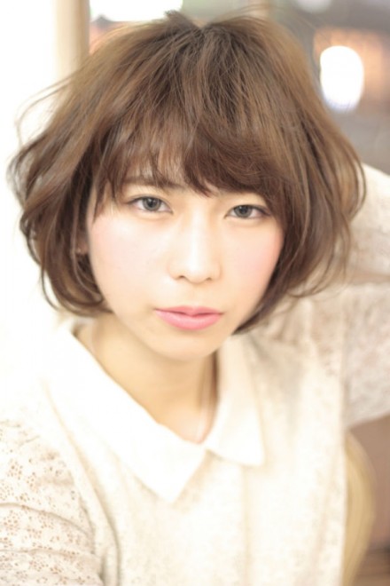 バックサイドの髪を少し耳に掛け、軽やかなふんわり感を出したスタイルです。ボブだけど重くは見せたくない方にオススメなスタイルです。