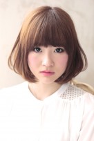 軽くグラデーションの入った前下がりAラインボブです。前髪を目の上でぎりぎりで切る事で可愛くフェミニンな印象に仕上げました。