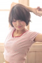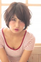 毛先を動かすようにはねさせたショートボブスタイル。重めなシルエットに毛先を動かす事によって軽さを出しました。直毛の方はデジタルパーマをかけ動きをだすのもありです!