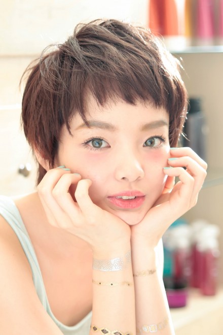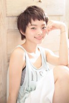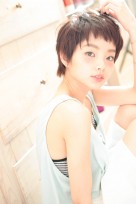 襟足にやや長さを残したベリーショートスタイルです☆ 束感が出やすいようにスライドカットを施しています!! バングは眉上にカットされたショートバング♪ 抜け感を出す為に、隙間を作るようにギザギザにカット◎ ボーイッシュにならないように顔周りをマッシュラインに☆ カラーリングはベージュブラウンで柔らかい質感とツヤ感を演出◎ ☆スタイリングポイント☆ 全体にややセット力のあるワックスを毛先中心につけて完成♪