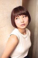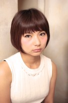前髪短めのストレートの前下がりボブ。艶のあるシンプルなボブスタイルです。